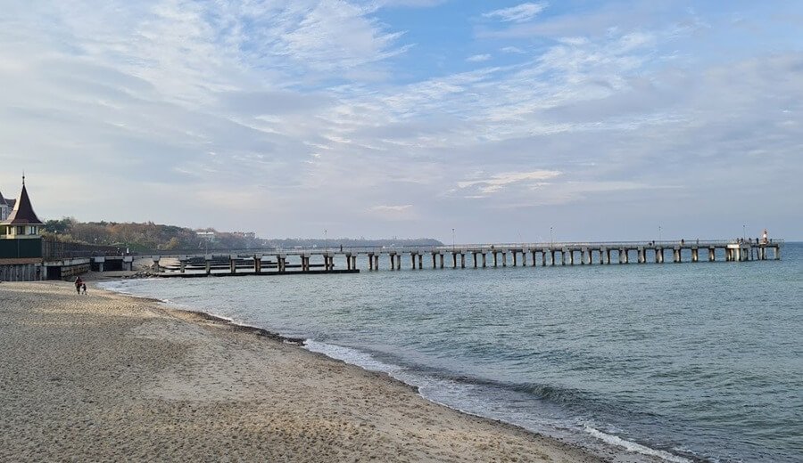 Современный променад протянулся вдоль песчаного пляжа на 1,7 километра. Это благоустроенная набережная с пешеходными дорожками, фонарями, скамейками и смотровыми площадками. Отсюда открываются панорамные виды на Балтийское море и сосновый бор, а особенно красиво здесь на закате.