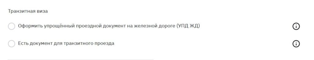 - обязательно поставить галочку в поле «Оформить упрощенный проездный документ». Если же есть шенгенская виза или другой документ, разрешающий проезд через Литву, тогда отметить: «Есть документы для транзитного проезда».